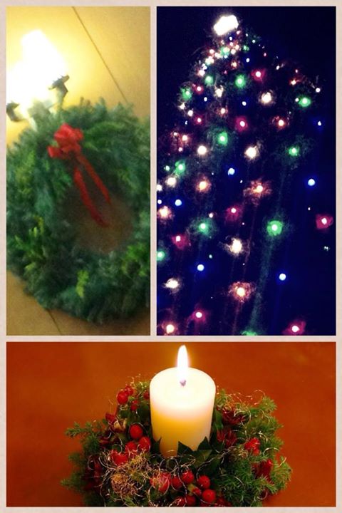 *写真、左は礼拝堂に飾られたリース、右はシンプルなXmasツリー、18メートルはあったとかんじられます♪